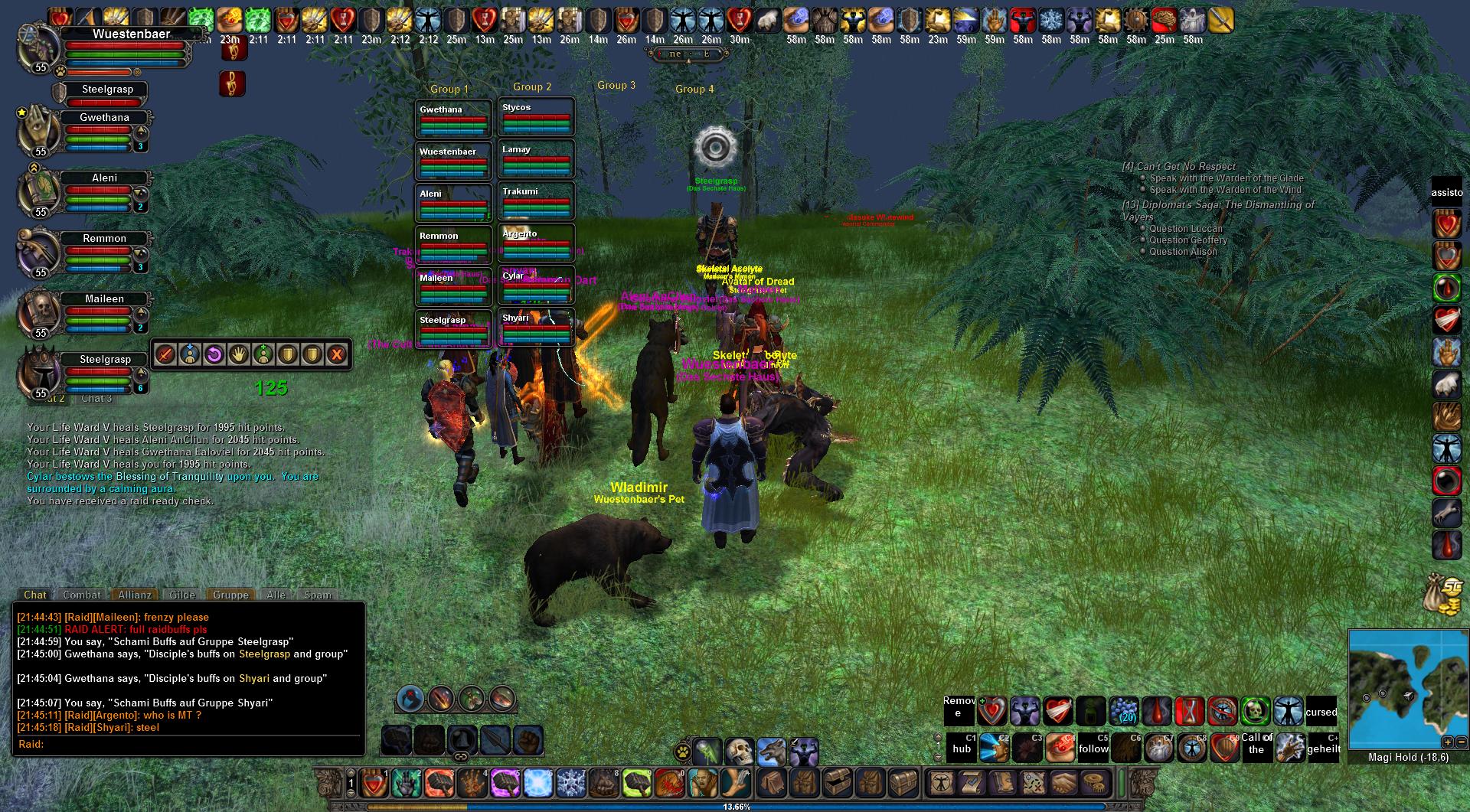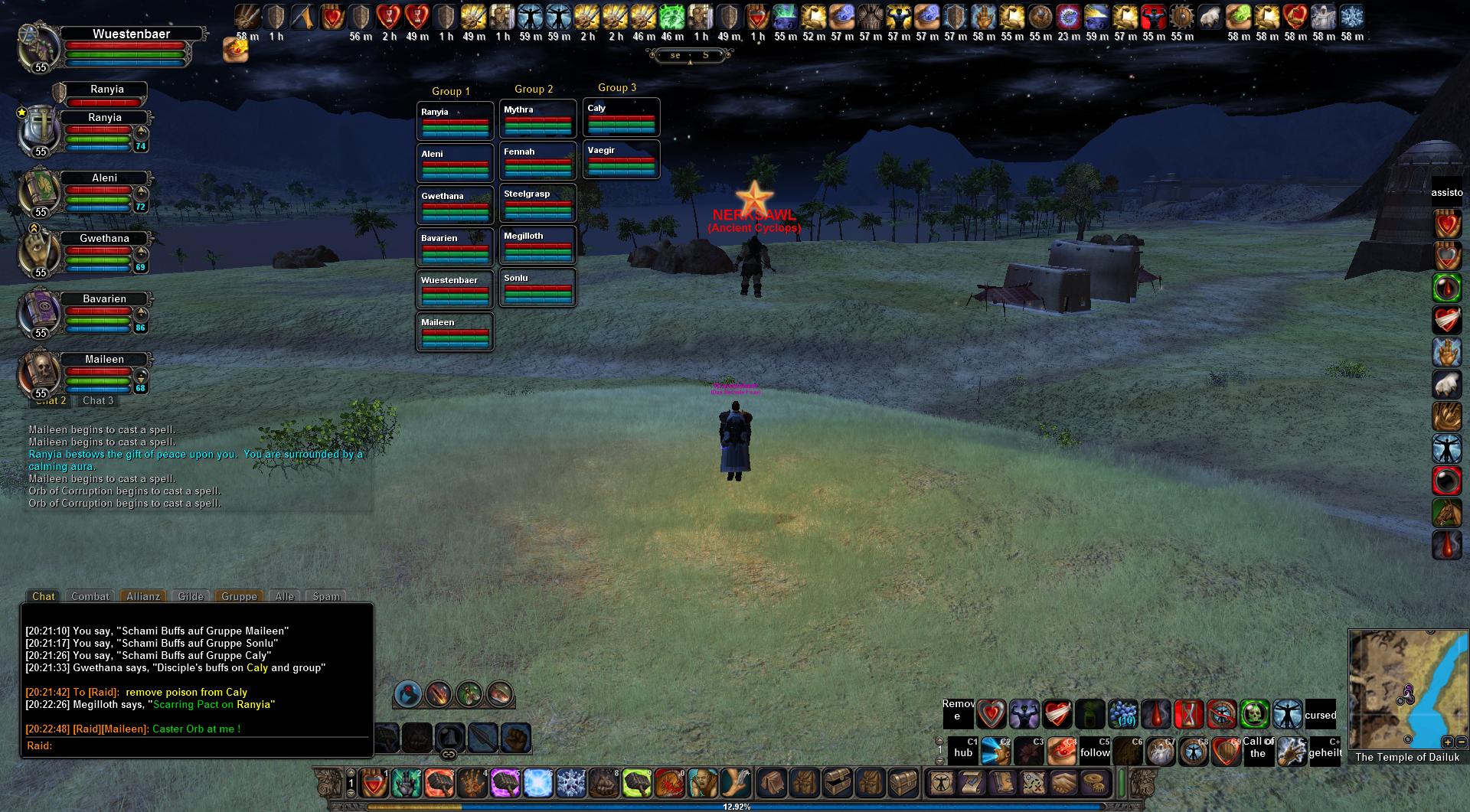 Also wie Ihr seht waren wir schon einige Male vorher mit 2 Gruppen unterwegs und es ging. Es ist nur nervig dass sie alle erst während/nach Jagund auftauchen. Vor allem wenn einige vorher mühselig über eine Stunde Buffs hochziehen um dann zu sehen dass nur 4 Leute aus der eigenen Gilde 19:30 on sind.